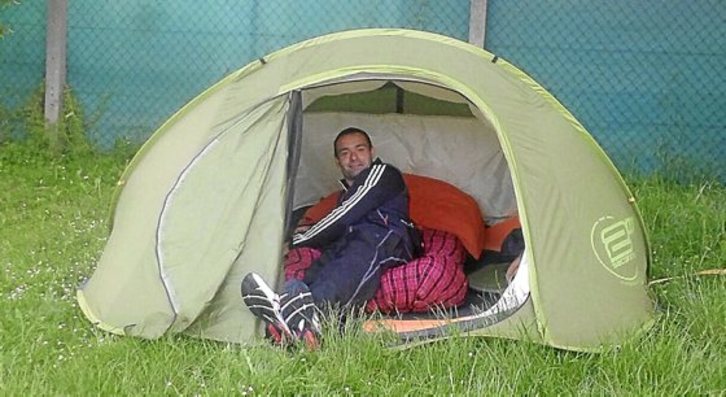 La situación de Oier Oa, sin embargo, el donostiarra confinado en la localidad de Sartrouville, ha llegado a tal punto que se encuentra viviendo en una tienda de campaña en el jardín de una iglesia de la localidad, próxima a París.