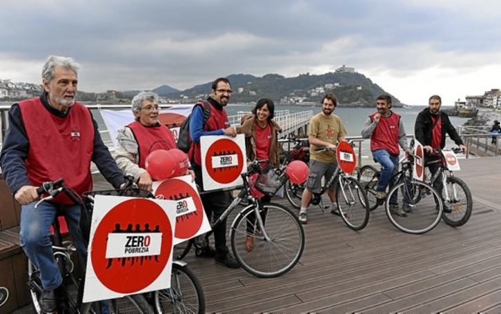 En una rueda de prensa en Donostia, los miembros de la Plataforma Pobreza Cero Irene Molero e Iñigo Odriozola dieron cuenta de las actividades organizadas para esta semana con motivo de la conmemoración este sábado del Día Internacional para la Erradicación de la Pobreza, que incluirán charlas, sesiones de cine y marchas en bicicleta el domingo por la mañana en Araba, Bizkaia y Gipuzkoa.