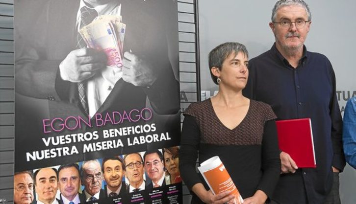 La nueva campaña de ELA fue presentada en el transcurso de una rueda de prensa en la que el líder del sindicato estuvo acompañado por la secretaria general adjunta, Amaia Muñoa, y los responsables de Industria y Construcción; Servicios privados; y Área pública.