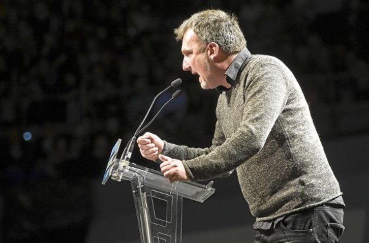 Sorprendió, envolvió y emocionó. Por ese orden. No es usual que en un mitin un texto recitado levante la admiración del de Maia con su “Kantu bat gara” en el Velódromo. Canciones y memoria. GARA lo reproducirá mañana en páginas centrales.