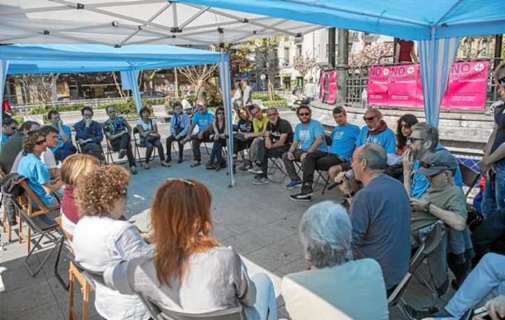 La Plazo Easo, en Donostia, fue este fin de semana el espacio elegido por la iniciativa #NoTragamos Donostialdea para dar a conocer por qué se oponen a que se mantengan los recortes.