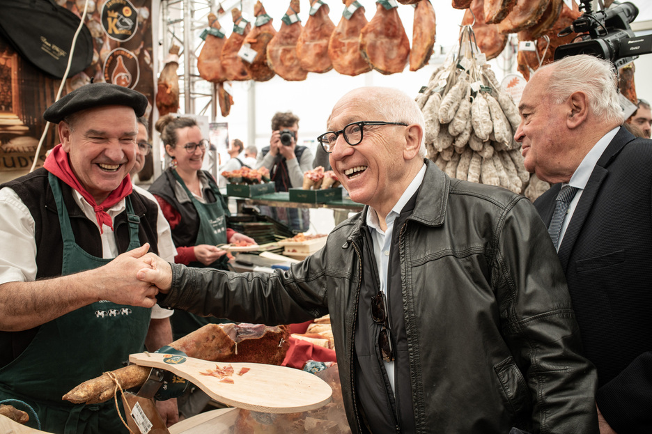 Urteroko legez, Jean-Rene Etchegaray hiriko auzapeza bertaratu da xingarraren azokara. (Patxi BELTZAIZ)
