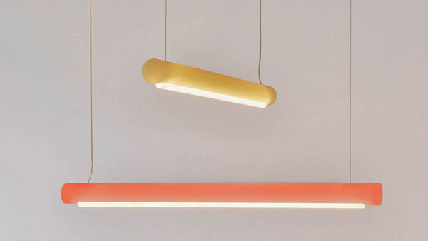 Haciéndose eco de cómo las líneas entre entornos de vida y trabajo se vuelven cada vez más difusas, la diseñadora de iluminación Sabine Marcelis, basada en Rotterdam, colabora con la marca inglesa Established & Sons en Aura. La colección está compuesta por dos barras cilíndricas de resina en tonos pastel. Con más de un metro de longitud, cada lámpara se ha formado a partir de tubos cilíndricos de resina bio-epoxi elaborados con subproductos de la industria agrícola. Coloreadas en tonos suaves de amarillo y coral, las luces translúcidas de Aura hacen honor a su nombre y emiten un cálido resplandor cuando se iluminan. Diseñadas para ser suspendidas del techo, Aura funciona tanto en solitario como formando parte de una composición grupal. www.establishedandsons.com/products/aura-light