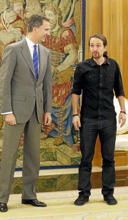 Iglesias, que hace diez días se presentaba en el Congreso con su plana mayor y «Ejecutivo en la sombra», apareció ayer solo y potenciando su imagen dialogante. Sabe que en Ferraz hay marejada y no quiere terminar de romper la cuerda. O, al menos, que los ciudadanos no interpreten que ha sido él quien la rompió. Por eso insistió en que había planteado a Felipe de Borbón la misma fórmula que ya lanzó en su primer encuentro: tripartito entre PSOE, Podemos e IU; Sánchez como presidente, él de vicepresidente y un reparto equitativo entre las tres formaciones. «Somos generosos», argumentó el líder de Podemos, que insistió: «Creo que Pedro Sánchez tiene que elegir si quiere hacer un gobierno con lo que hace poco llamaba las derechas o si por fin se pone a estudiar nuestra oferta, porque llevamos díez días sin hablar ni siquiera por teléfono, y nos ponemos a trabajar», argumentó.