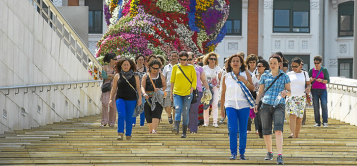 29 AGO. 2014 UDATE BETE Al mal tiempo, más museos En verano, son muchos los turistas que se acercan a nuestras tierras. La llegada de estos es de por sí una oportunidad única para los museos locales que les esperan con los brazos abiertos y una amplia oferta. Pero, ¿visto el mal tiempo -bastante inestable durante estos tres últimos meses- habrán aumentado las visitas en los museos de Euskal Herria? No hay duda de que entre la inmensa oferta de destinos turísticos con las que contamos, Donostia y Bilbo son dos de los reclamos turísticos que los visitantes tanto estatales como internacionales solicitan más. Atendiendo a los datos publicados la pasada semana por el Instituto Vasco de Estadística Eustat, la mayor ocupación hotelera del pasado mes se registró, precisamente, en Donostia, seguida de la costa guipuzcoana y de la capital vizcaina. Esta afluencia de turistas ha aumentado este verano, pese a que la meteorología no ha sido precisamente la mejor aliada del sector. Al resguardo de algún establecimiento gastronómico o al cobijo de un reclamo cultural, las personas que nos han visitado han sabido capear el temporal. Museos y galerías se han convertido, por lo tanto, en un plan recurrente y enriquecedor. Amplia oferta Lo cierto es que en Euskal Herria los visitantes tienen al alcance de la mano todo tipo alternativas culturales con las que empaparse de la cultura local y global. Sin lugar a dudas, en este campo una de las visitas más demandadas es el del Museo Guggenheim de Bilbo. Esta mismas semana Unai Rementeria, el diputado de Presidencia de la Diputación de Bizkaia, ha destacado la afluencia de visitantes en el Museo Guggenheim de Bilbo, que ha calificado de «significativa». La llegada de visitantes es de por sí una oportunidad para los museos, pero, ¿el tiempo -un tanto lluvioso durante estos tres últimos meses- ha hecho que las visitas hayan aumentado? Es cierto que, debido a las exposiciones que ofertan, los turistas aprovechan sus vacaciones para asistir a estos lugares emblemáticos en los que profundizan sus conocimientos acerca del arte, la historia, la gastronomía, las peculiaridades... del pueblo vasco. Los responsables de museos y exposiciones aprovechan esta oportunidad y esperan con los brazos abiertos la llegada del verano, ya que, salvo excepciones, este es el periodo del año en el que mayor público suelen acoger. Aumento de visitantes Mercedes Jover Hernando, directora del Museo de Navarra, asegura que entre junio, julio y agosto han recibido 7.593 visitantes. Dado que en Iruñea no se busca turismo de «sol y playa», afirma que la meteorología no se ha dejado notar en el número de visitas, que han ido en aumento: «Nos alegra saber que el número de visitantes se ha mantenido respecto de los años anteriores, incluso con una ligera subida», afirma. Los responsables del Museo de Bellas Artes de Bilbo y San Telmo Museoa de Donostia, Marta García Maruri y Marilis Balenciaga, también están satisfechos con el transcurso del verano. En el caso del museo de la capital vizcaina, en los meses de junio, julio y agosto del año 2013 recibieron un total de 34.691 visitas. Este año, en cambio, en el mismo periodo de tiempo han superado los 50.000 visitantes. Tal y como asegura Marilis Balenciaga, técnico de San Telmo Museoa de Donostia, el mal tiempo de este verano ha influido positivamente en el número de visitantes. Concretamente, afirma que los días en los que ha hecho muy mal tiempo se han acercado más personas a sus instalaciones. Reflejo de ello son las 20.521 visitas que se han recibido. Además, aún está por ver hasta cuánto ascenderá la cifra. «Hasta finales de setiembre queda mucho verano en Donostia y se incrementará notablemente este número», señala Balenciaga. El Festival de Cine de Donostía es otra fecha señalada en rojo para este museo, ya que atrae también a numerosos visitantes. La subida del número de visitas en estos tres museos no es solo cosa de los meses de verano. Afirman que es constante durante todo el año, a pesar de que los trabajadores de los tres museos hayan asegurado que «la crisis afecta a todos los ámbitos de la sociedad y por tanto, también al cultural». Las tres instituciones han obtenido muy buenos resultados. A modo de ejemplo, Jover publica que las visitas en el Museo de Navarra han «incrementado de 32.807 en el año 2010 a 40.001 en el 2013». Los empleados de los museos consultados afirman que dejando a un lado las visitas de los ciudadanos vascos y los provenientes del Estado español, las personas que provienen del Estado francés son los que mayormente visitan sus galerías. Por caso, García Maruri, subdirectora de Comunicación del Museo de Bellas Artes, señala que la pinacoteca recibe principalmente «un público local y estatal». Durante este verano el porcentaje de público extranjero ha sido del 21,5% y la mayoría de ese porcentaje han sido visitantes franceses. Junto a los visitantes del Estado francés, Euskal Herria suele recibir también la visita de ciudadanos provenientes de Italia, EEUU y Gran Bretaña. El incremento de turistas durante el verano trae consigo una mayor oferta por parte de los responsables de los museos. Es época de visitas y los directores de los museos intentan poner toda la carne en el asador. Durante el verano, por ejemplo, el museo San Telmo ha propuesto a sus visitantes, la muestra fotográfica de Axel Hutte o la exposición «Frivolité», en la que el público puede ver in situ piezas de la indumentaria del siglo XVIII; el Museo de Navarra ha organizado el itinerario «Tras el Greco en el Museo de Navarra»; y en el museo de Bellas Artes bilbaino se puede ver la exposición «Arte japonés y japonismo». Ofertas gratuitas para atraer más visitas Para fomentar el turismo cultural y aumentar el número de visitas, a lo largo del verano el Museo de Bellas Artes de Bilbo, El Museo de Navarra y San Telmo Museoa han ofrecido diferentes propuestas