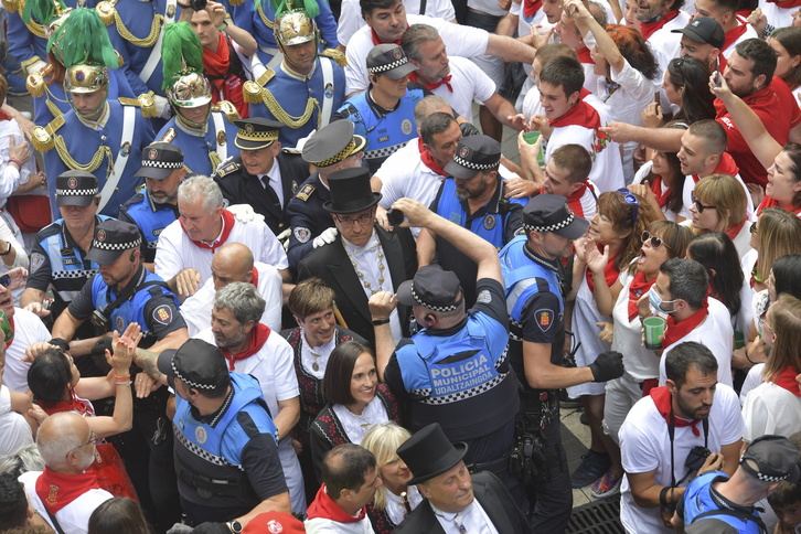 El alcalde de Iruñea ha apostado este viernes por impulsar un proceso penal contra quienes se enfrentaron con agentes policiales que custodiaban a la Corporación durante la procesión del día de San Fermín.