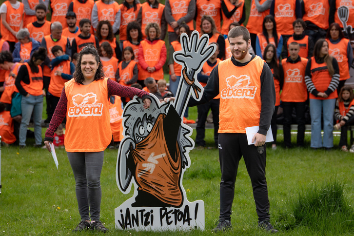 Guzti hau hartuko duen gune nagusi izango den Beriain belardian egin dute agerraldia. «Elkartasun jaialdi bat da Hatortxu, preso politikoen senide eta lagunen zama arintzea izan duena helburu. Erronka ekonomikoa zein politikoa da aldi berean; eta handia da lortu dena; jaialdiaren dimentsioa, kartelak, lortutako erreferentzialtasuna… Erronkaren tamainaren lekuko dira. Baina hemen ez dago misteriorik. Formula sekreturik ez duen errezeta da Hatortxurena. Auzolanari esker izan da posible halako egitasmo bat hainbeste urtetan zehar aurrera eraman ahal izatea», adierazi dute Nerea Eugik eta Oihan Ekizak, ekimeneko bozeramaileek.