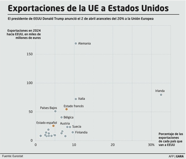 La Casa Blanca confirmó ayer que la partida de aranceles adicionales del 50% que Donald Trump amenazó con imponer a China entrará en vigor hoy mismo, lo que hará que la tasa de gravámenes sobre las importaciones del país asiático sea en total del 104%. «Entrarán en vigor a las 00.01 (4.01 GMT)», declaró la portavoz, Karoline Leavitt, quien añadió que «fue un error de China tomar represalias contra el presidente; cuando EEUU recibe un golpe, él responde con más fuerza». Horas antes, Trump declaró que Pekín quiere un acuerdo sobre aranceles «desesperadamente», pero consideró que no sabe «cómo empezar» a negociar y dijo estar a la espera de la llamada del mandatario chino. «El presidente también quiere que les diga a todos que si China hace un acercamiento para llegar a un acuerdo, será increíblemente generoso, pero que hará lo que sea mejor para el pueblo estadounidense», apostilló Leavitt. GARA