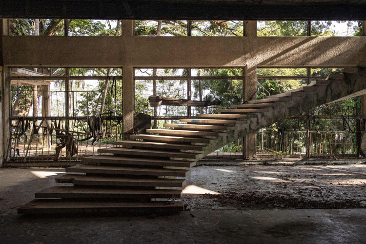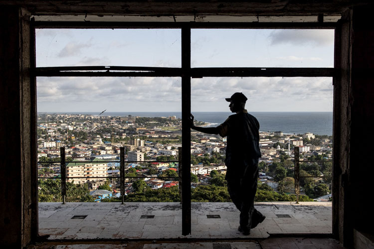 Las marcas físicas que atestiguan estas pruebas son raras en Monrovia. El Ducor, situado entre árboles en la cima de una colina en la capital, conserva una vista impresionante del Atlántico. Desde allí se ve perfectamente el barrio pobre de West Point, una barriada superpoblada. En diez niveles se escenifican pasillos y habitaciones fantasmales con pintura ennegrecida por la infiltración, paredes mohosas perforadas por balas y repletas de grafitis, tramos de escalones sin barandillas, terrazas reclamadas por la vegetación y atravesadas por huecos de ascensores vacíos.