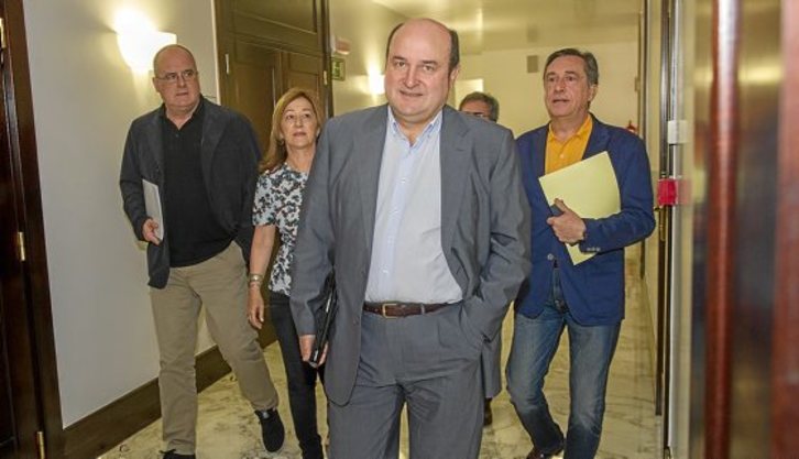 Andoni Ortuzar entró ayer a opinar sobre la situación abierta en Nafarroa y lo hizo para decir que le gustaría que el PSN «estuviera en el eje del cambio» en ese herrialde y declarar que, de hecho, «lo va estar». El presidente del PNV considera que la formación que ha sido uno de los puntales del régimen, ya «ha hecho autocrítica» y ha cerrado su época de «lazarillo fiel de UPN». El viernes, María Chivite, líder del PSN, asumió que irá a la oposición junto a UPN.