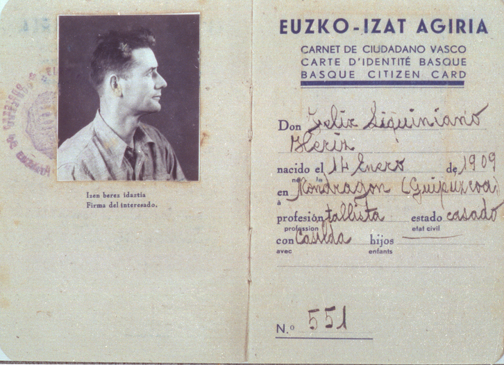 Este jueves 22 de diciembre se cumplen 40 años de la muerte de Felix Likiniano. En compañía de su eterna pareja Casilda Hernáez, compartió los ideales anarquistas y vivió la Sublevación de Octubre, la guerra civil, la resistencia contra el nazismo y el nacimiento de ETA, cuyo anagrama diseñó en 1977. Fue también el precursor de la expresión ‘Aurrera bolie’, luego adjudicada a Txomin Iturbe.