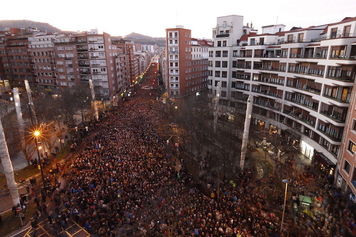 Cuando la movilización de Baiona ha finalizado le ha cogido el testigo la de Bilbo, pasadas las 17.15, desde La Casilla. Cuando la cabecera llegaba al final, en el Ayuntamiento, la cola estaba en la calle Autonomía, en el cruce con Iparragirre.