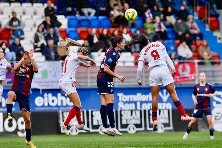 Prácticamente no ha tenido que volver a intervenir la guardameta visitante en todo el primer tiempo porque el Eibar quería pero no conseguía generar ocasiones claras de peligro ante un Sevilla que venía de encajar 21 goles en siete partidos –seis derrotas en siete encuentros, incluyendo la eliminatoria copera– y se ha defendido con uñas y dientes. Solo a cuatro minutos del descanso ha vuelto el cuadro local a acariciar el empate, con un cabezazo de Andrea Álvarez en un saque de esquina aparentemente sin peligro pero que se ha ido complicando y que Sullastres ha acabado enviando de nuevo a córner junto al palo.