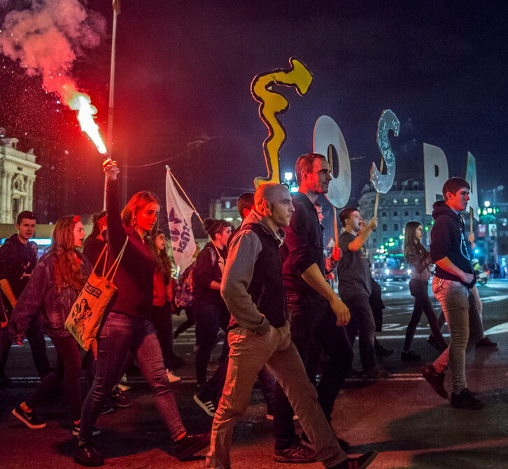 Ernairen manifestazioa Bilbon Altsasuko gazteen atxiloketaren bigarren urteurrenean.