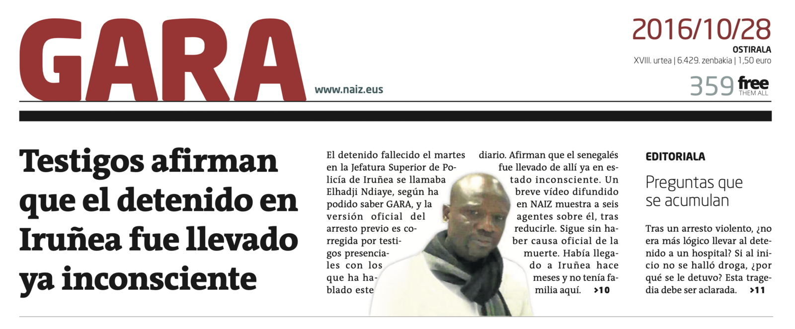 Astebete beranduago eman zuen ezagutzera GARAk hildakoaren nortasuna, Arrotxapean gaia ikertzen egun batzuk eman eta gero. Elhadi Ndiaye zuen izena hildakoak, senegaldarra zen, eta hilabete gutxi batzuk zeramazkien Iruñean bizitzen. Jasotako testigantzek lehenengo bertsio poliziala gezurtatu eta atxiloketa oso bortitza izan zela zioten. Horrela demostratu zen NAIZek argitaratutako bideo baten bidez.