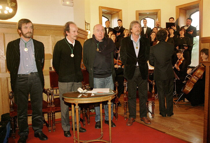 Artze anaiak, Mikel Laboa eta Benito Lertxundi EHUko urrezko dominen banaketan.