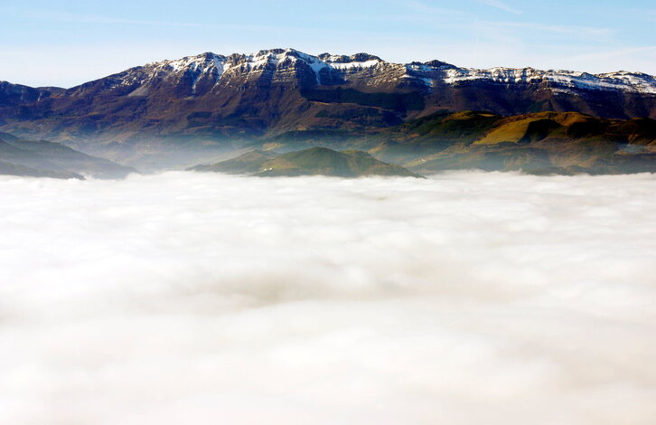 Aizkorri mendilerroa Goierri estaltzen duen lanbroaren gainetik.