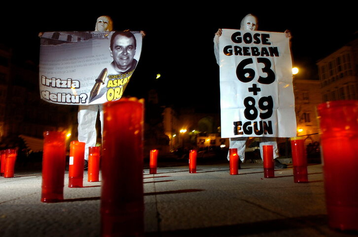 Iñaki de Juana Chaosen aldeko ekimena Gasteizen, bere gose grebako 88. egunean.
