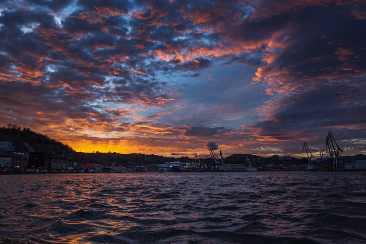 Bilboko itsasadarra egunsentian, ontziola parean.