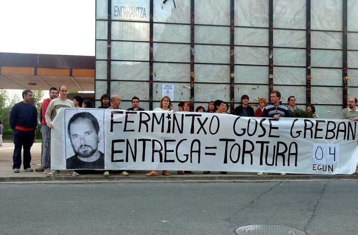 Elkarretaratzea Berriozarren, gose greban dagoen Fermin Sanchez herriko presoaren alde.