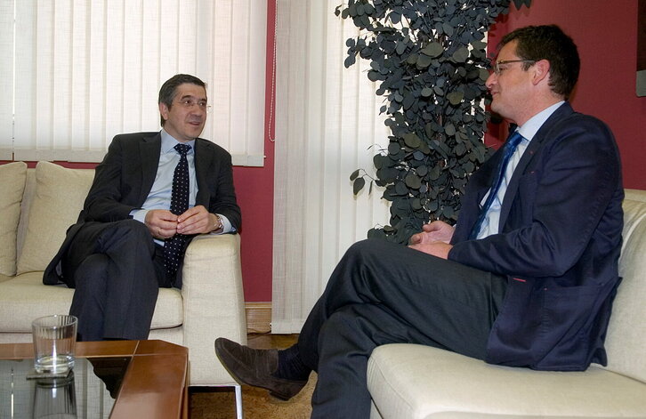 PSE-EEren Bilboko egoitzan, Patxi Lopez eta Antonio Basagoitiren arteko bilera Lopez lehendakari izendatzeko.