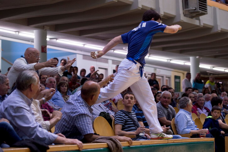 Laso pilotaria buruz buruko txapelketako partida batean Tolosan.
