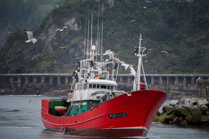 Itsasontzi bat porturatzen Antxoaren kanpaina bete-betean.