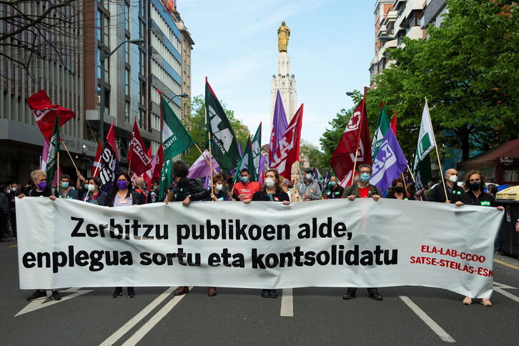 Alor publikoko sindikatuek grebara deitu dute. Irudian, Bilboko manifestazioa.