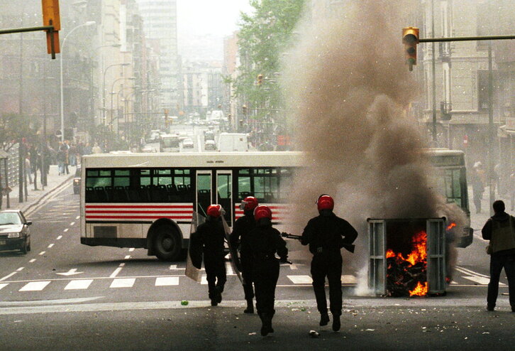 Ertzaintza Ynestrillasen taldeari babesa ematen Bilbon.