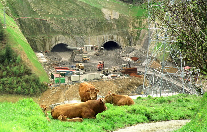 Behiak Urbinako errepideko lanen ondoan.