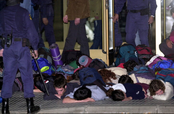 Nafarroako Unibertsitate Publikoan (UPNA) euskararen erabilera aldarrikatzen zuten ikasleak indarrez atera ditu Poliziak.