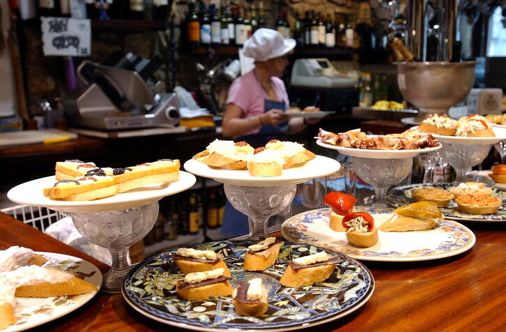 Donostiako Bergara tabernako pintxoak. Udalak beira-arasak jartzera behartuko duen araudia onartu du.