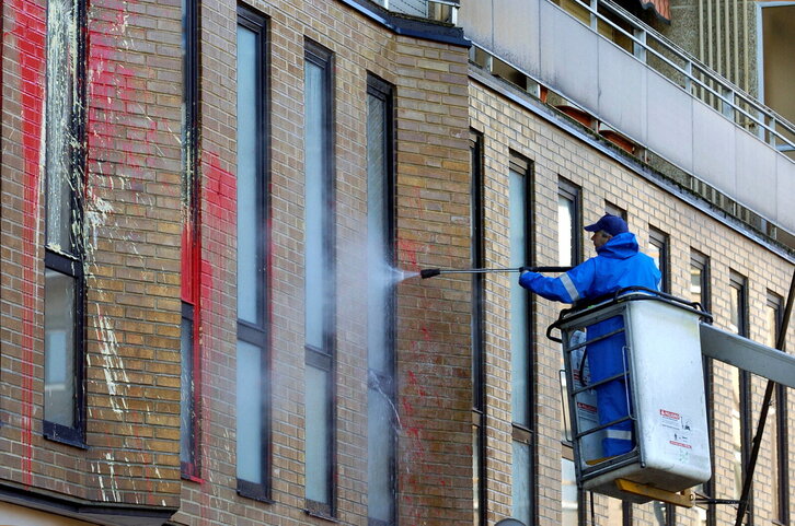 EAJko Gasteizko egoitzaren fatxada garbiketa, haren kontra pintura bota ondoren.