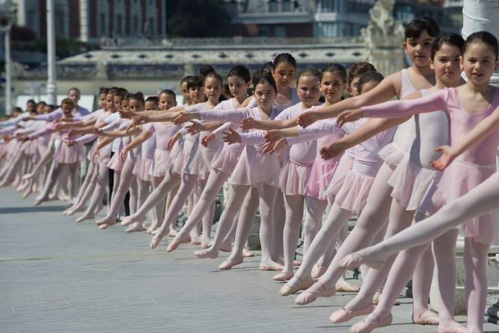 Dantza klasikoko ikasleen erakustaldia Donostiako Kontxako barandan.