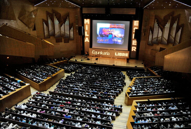 'Euskaldunon Egunkaria'ren itxieran auzipetuak izan direnei esker ona adierazteko ekitaldia Bilboko Euskalduna Jauregian.