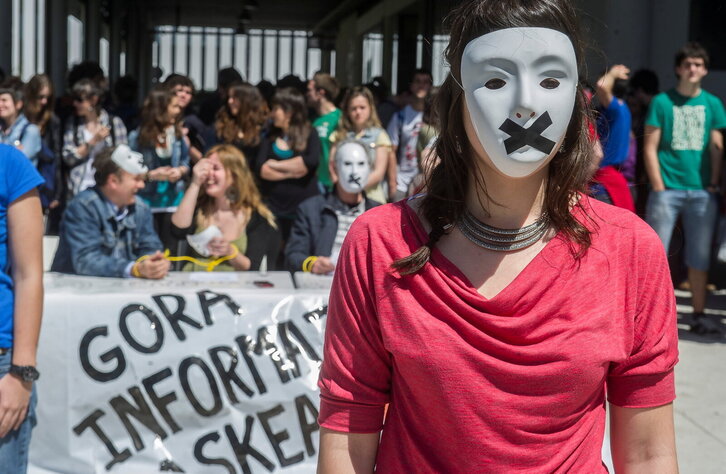 Informatzeko eskubidearen aldeko prentsaurrekoa eman dute Gizarte eta Komunikazio Zientzietako ikasle eta irakasleek.