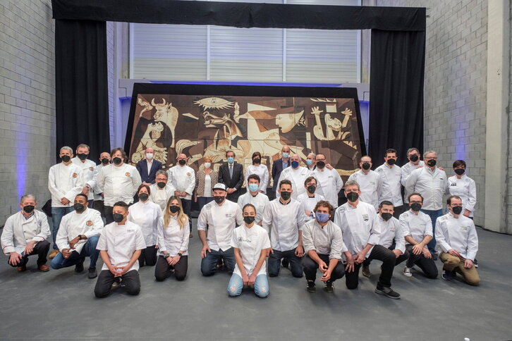 Gernika koadroaren txokolatezko erreplikaren inaugurazio ekitaldia Gernikan bertan.