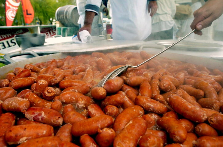 Txorizo egosiak prestatzen San Prudentzio erromerian Gasteizen.