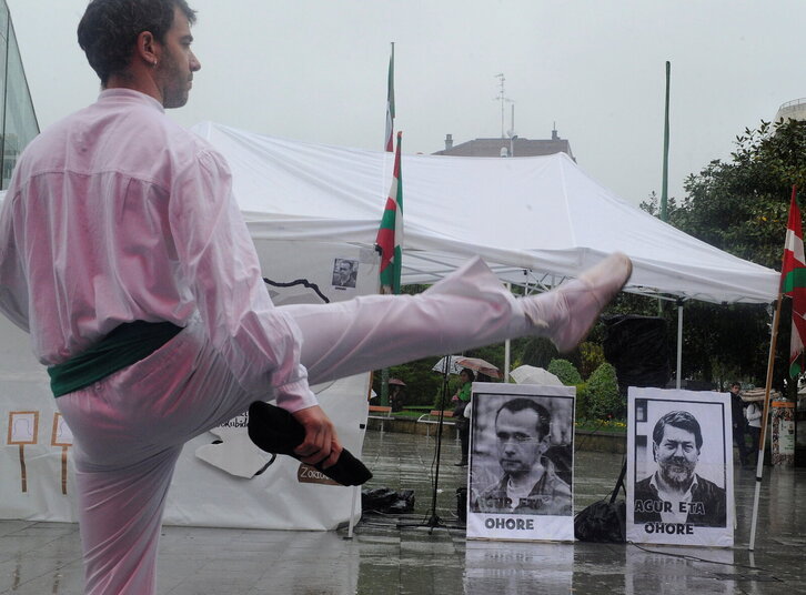 Xabier Galdeanori omenaldia Algortan. Aitor Elorza erbesteratua ere gogoratu zuten.
