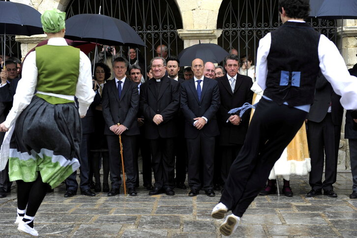 San Prudentzioren omenezko aurreskua dantzatu dute agintarien aurrean Gasteizen.