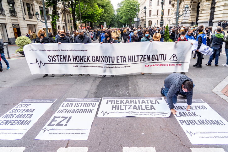 Lan Osasunaren Nazioarteko Egunean euskal sindikatuek deitutako manifestazioa Bilbon.