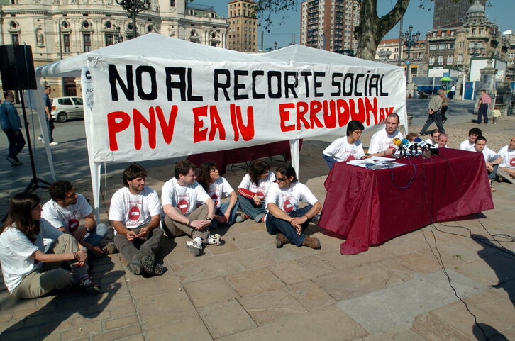 Rodriguez Zapaterok iragarritako murrizketa sozialak salatzeko kanpaldia Bilboko Gobernuaren ordezkaritzaren aurrean.