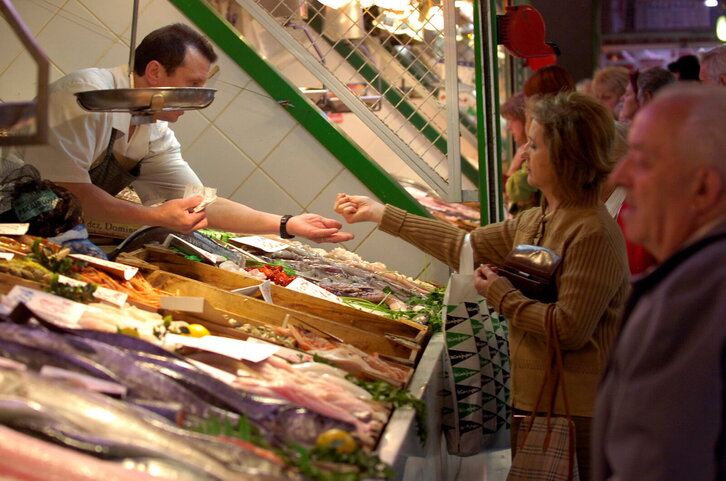 Saltzaileak eta bezeroak 130 urte bete dituen Santo Domingoko merkatuan.