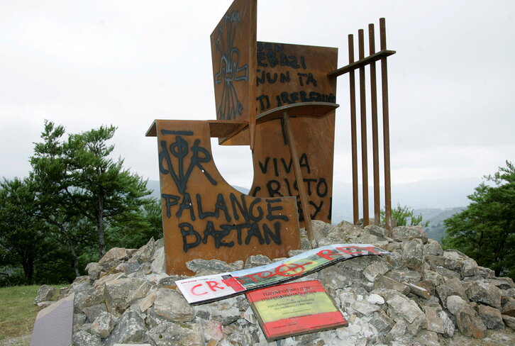 Margoketa faxistak eta txikizioak joan den asteburuan inauguratutako Iruritako monolitoan frankismoaren esklaboen omenez.
