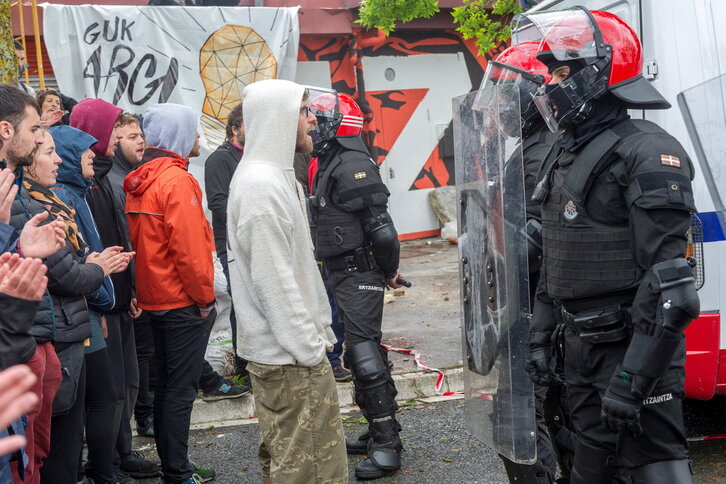 Errekaleor auzo okupatuko bizilagunen protestak Iberdrolako langileak argindarra kentzera joan direlako Ertzaintzaren babespean.