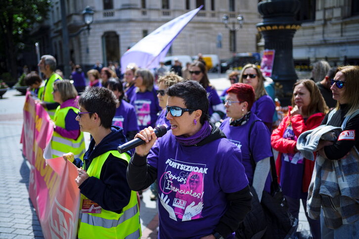 Areatzan kanpatuta dauden pertsonen prentsaurrekoa, gizarte-laguntzak murrizteagatik protesta egiteko.