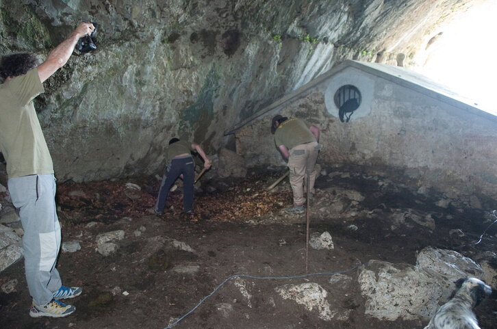 Aranzadi San Adrianeko leizean indusketa lanak egiten. Gaztelu baten aztarnak topatu zituzten.