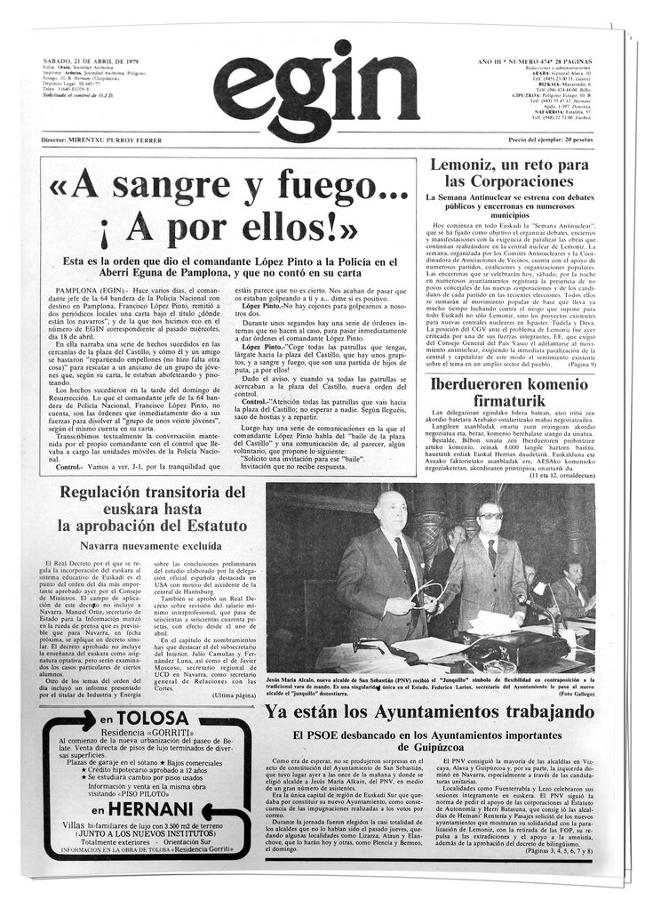 «A sangre y fuego... ¡A por ellos!», orden del comandante de la Policía española en el Aberri Eguna de 1979