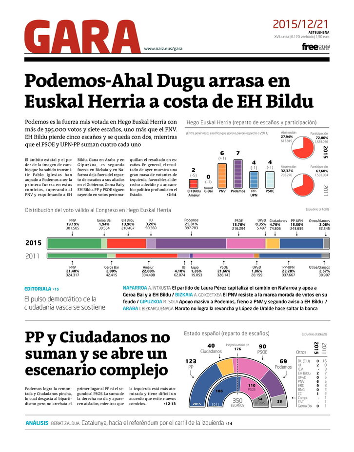 Podemos-Ahal Dugu arrasa en Euskal Herria