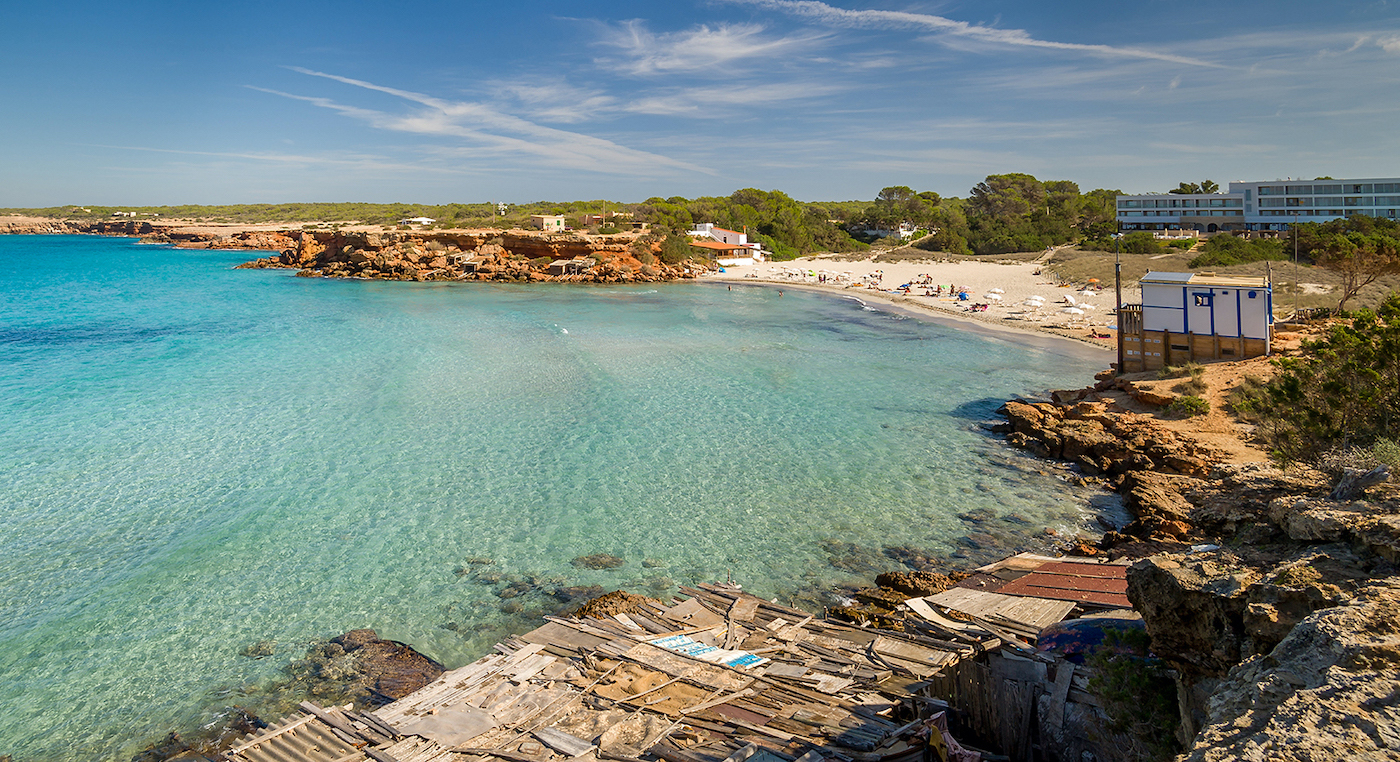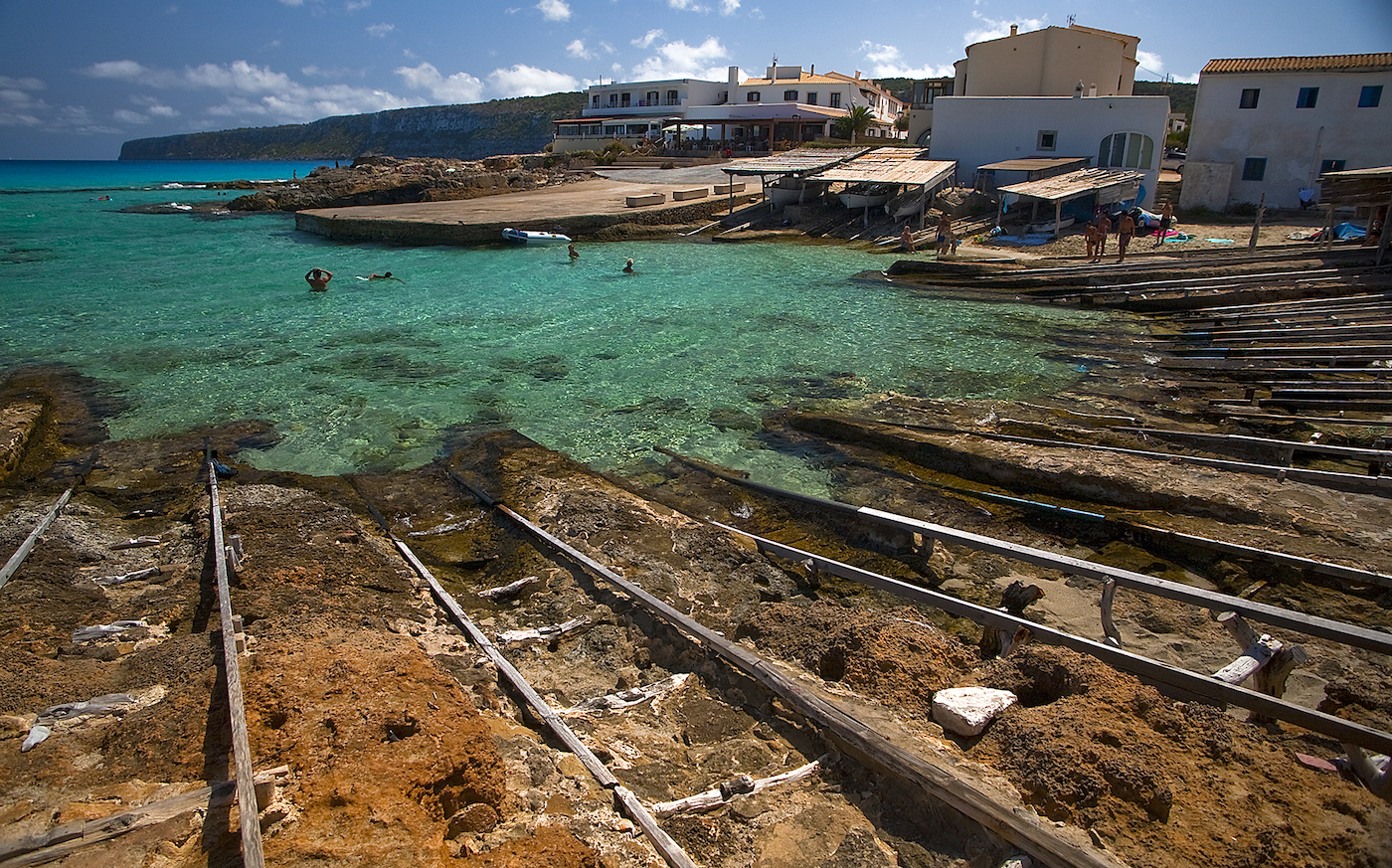 La Savina–Cala Saona. El trayecto arranca en la localidad que es puerta de entrada a la isla para bordear luego la laguna del Estany des Peix y seguir por un entorno rural jalonado de campos, paredes de piedra seca y casas típicas hasta Cala Saona. Una bahía natural agazapada entre acantilados bajos y con varaderos que cobijan las barcas. Es ideal para ver la puesta de sol. Distancia: 5,5 km. Tiempo: 95 min (a pie) o 35 min (bicicleta).